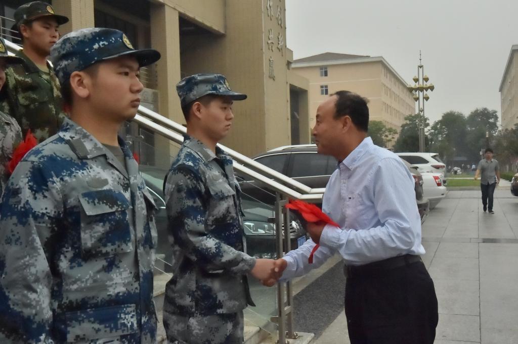 上午10时,赵曼等领导来到醒钟楼前,与我院光荣入伍的38名学生一一握手,亲切询问学生有关情况,为入伍学生佩戴大红花,赠送纪念品,并与大家合影留念。随后,赵曼在讲话中希望同学们要记住今天这个对自己军旅生涯和人生有着特殊意义的日子,到部队后要牢记使命,刻苦训练,要继承和发扬我军的优良作风和光荣传统,为部队的现代化建设和祖国的国防事业贡献自己的青春力量。他表示,学院师生会一如既往关注、关心大家的成长成才,期待各位在部队建功立业、捷报频传,为母校争光添彩。