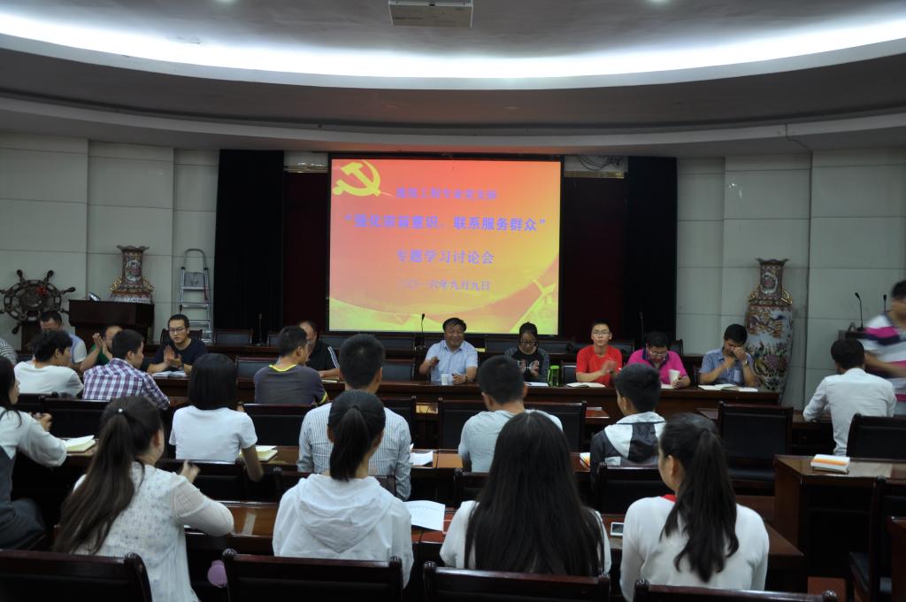 根据学院《在全院党员中开展“学党章党规、学系列讲话,做合格党员”学习教育实施方案》的安排,99日下午,各党总支、党支部的全体党员开展了以“强化宗旨意识、联系服务群众”为专题的学习讨论。学院领导分别以普通党员的身份参加了所在支部的学习讨论。