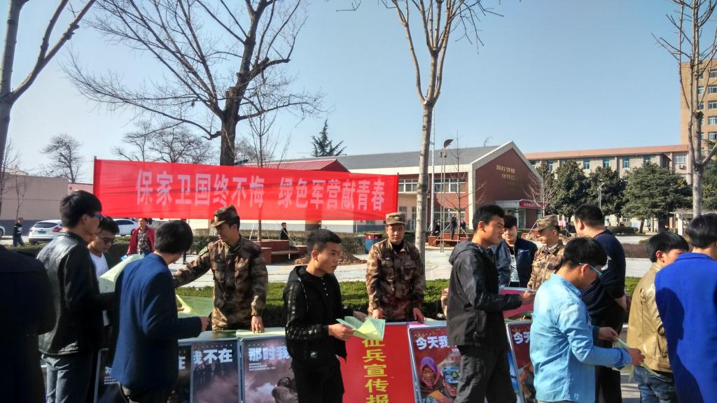 据介绍,全国2016年征兵工作比往年提前了2个月,省军区为了积极应对“当兵冷,征兵难”的严峻形势,要求各地扎实开展“国防教育和征兵宣传进校园”活动,我院进行的本次活动就是咸阳军分区和杨陵区人武部在咸阳地区开展的第一场活动。除了报告会外,人武部的官兵们还在学院主干道两侧悬挂醒目的征兵宣传标语,摆放了精心制作的征兵宣传板。并现场向学生们发放征兵宣传手册,介绍征兵政策和优惠措施,活动极大地吸引了大学生们投身军营的兴趣。