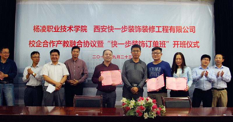 9月23日下午,生态环境工程分院与快一步公司校企合作产教融合协议签订暨“快一步装饰”订单班开班仪式在水韵楼二楼报告厅举行。我院副院长张迪、快一步公司总经理徐金诚、人事部经理石发发、行政部经理郝月及我院学保处、教务处负责人,生态分院领导班子、教师代表及订单班学生共60多人参加了开班仪式。开班仪式由生态分院党总支书记主持。