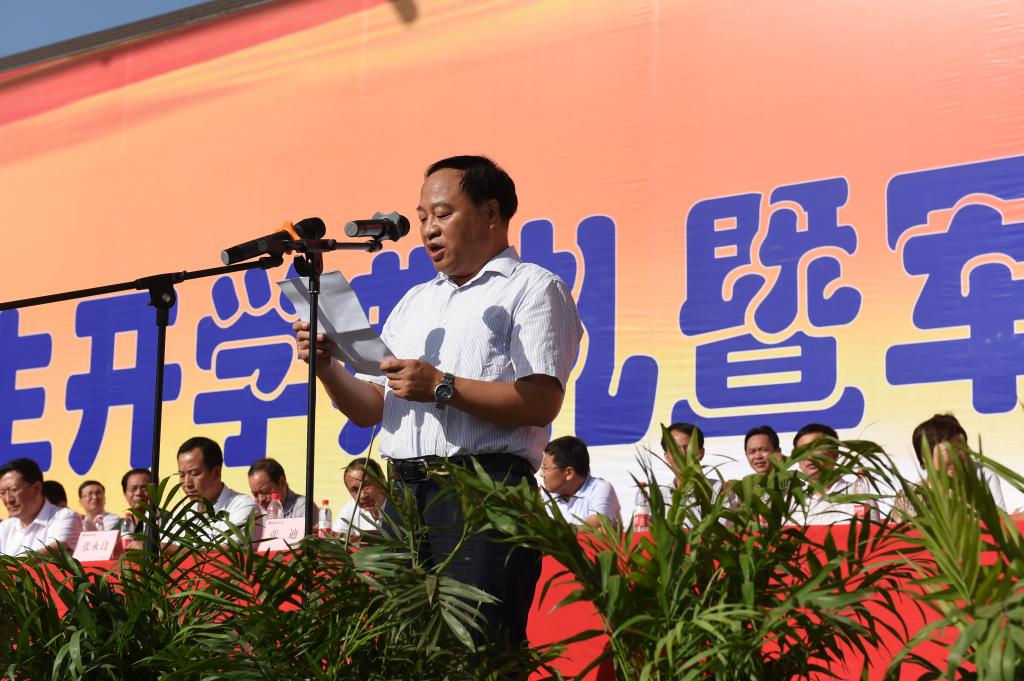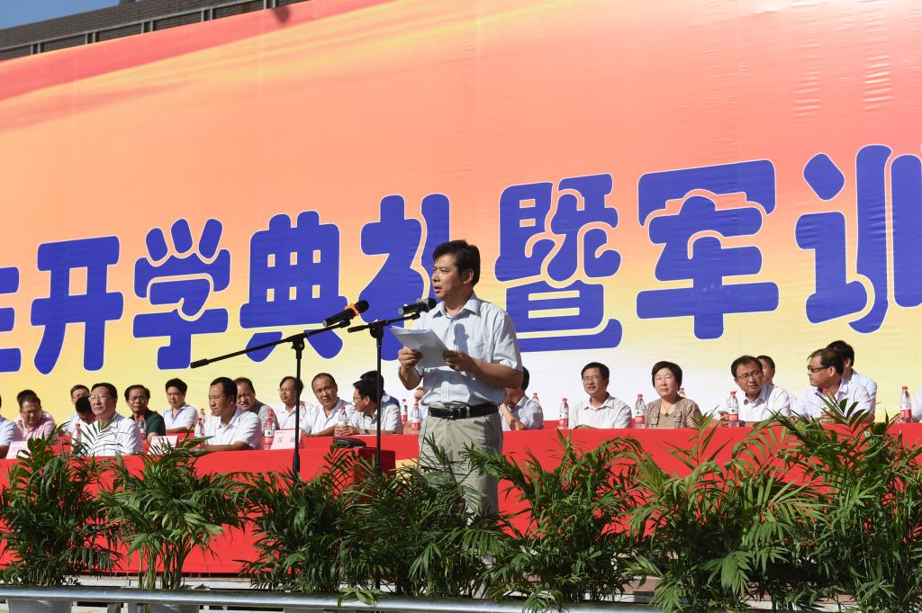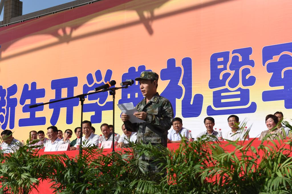 院长王周锁在讲话中首先代表学院党委、行政和全院20000余名师生员工对2015级新同学表示热烈的欢迎,向承担本次军训任务的执训官兵表示崇高的敬意。他简要回顾了学院的发展历程,介绍了近年来学院的发展概况及办学优势,特别是在专业建设、教学改革、校内外实习、实训基地建设等方面取得的成就。