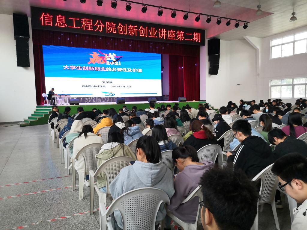 3月6日至3月20日,信息工程学院开展2021年度大学生创新创业能力培养系列讲座活动,先后邀请杨凌示范区科创中心大学生创业服务中心业务主管、创业导师左文革和杭州宸石投资管理有限公司合伙人、陕西仲欣生态农业有限公司总经理、陕西省人社厅省级创新创业导师朱军强两位导师担任主讲嘉宾,围绕“区校融合下的大学生创新创业”和“大学生创新创业的意义和价值”两个主题,在南校区一卡通中心举行系列讲座,信息工程学院1500余人次聆听了系列讲座。