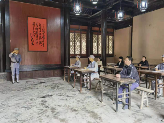 在安吴青训班旧址,党员们重温了入党誓词,参观了安吴青训班的活动场地,以及创办期间的重要设施、留存实物及文献资料,详细了解了当时青年训练班的创建、发展和对革命的贡献等,身临其境体验了青训班的环境,深刻体会到青训班12000民青年学员“学好本领上前线”的救国使命之所在。