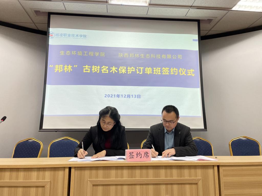 据了解,2020年,学校生态环境工程学院与陕西邦林生态科技有限公司签订合作协议,成立了古树名木保护中心,并联合申报了陕西省林科院科技创新计划项目,完成了西安兴庆宫公园古树保护项目。此次加入“邦林”古树名木保护订单班的14名学生,将按照培养方案和相关要求,不断提升专业知识和技术技能,为古树名木保护领域做出贡献。