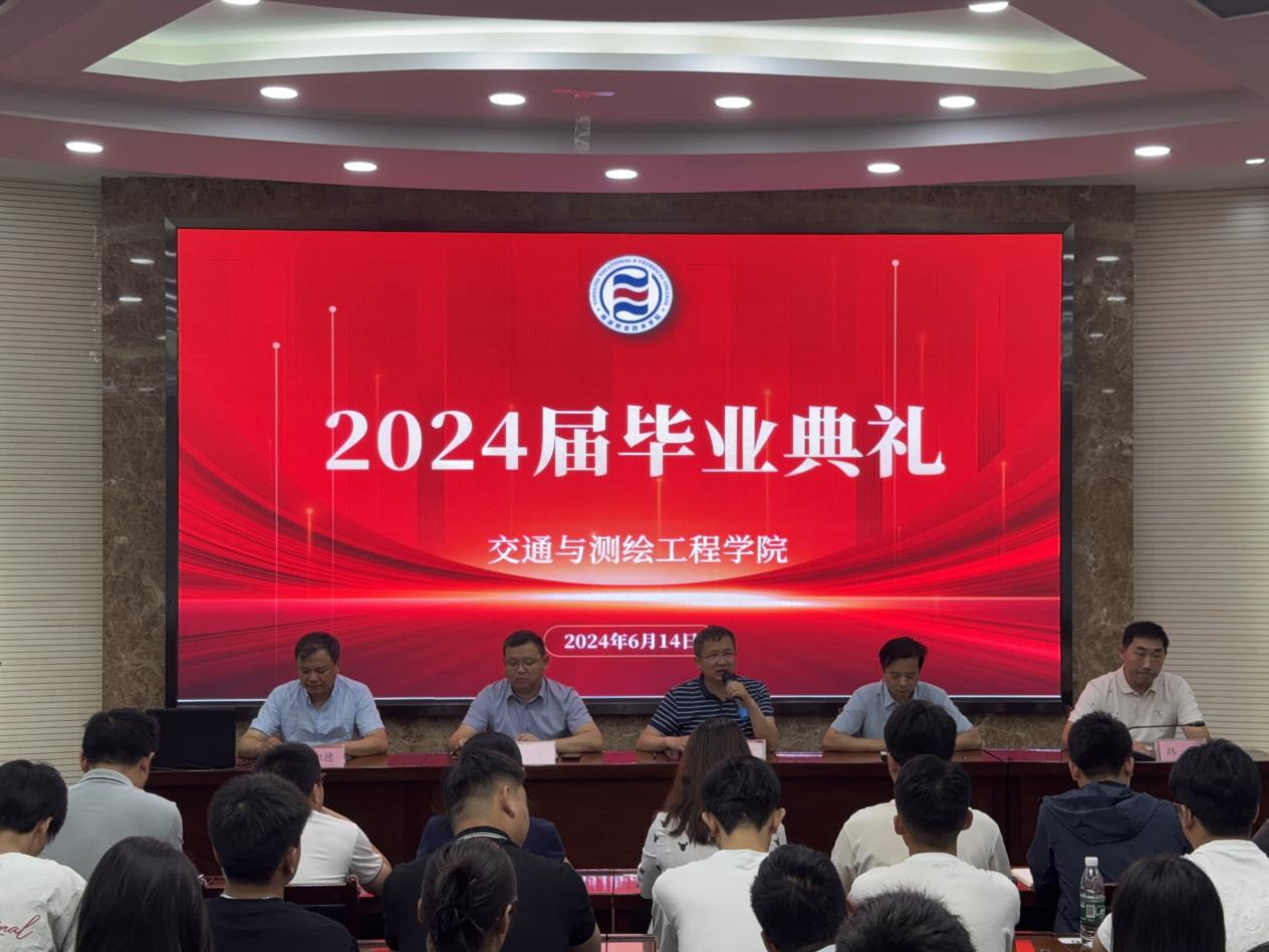 6月14日上午,交通与测绘工程学院2024届学生毕业典礼在水韵楼二楼报告厅举行。副校长张朝晖出席。