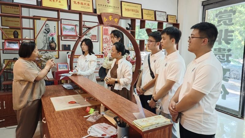 在合阳焕能民俗文化工坊,队员们见到了中华文化促进会剪纸艺术委员会委员、古莘书画院工艺美术专业委员会主任、省级非遗传承人赵焕能老人。满墙色彩艳丽的纸塑窗花作品,从“喜上眉梢”到“耕读传家”,一张张窗花诉说着农耕文明的浪漫。队员们围坐学习“折、画、剪、展”工序,从手忙脚乱到渐入佳境,在一次次尝试中感受非遗技艺的精妙。