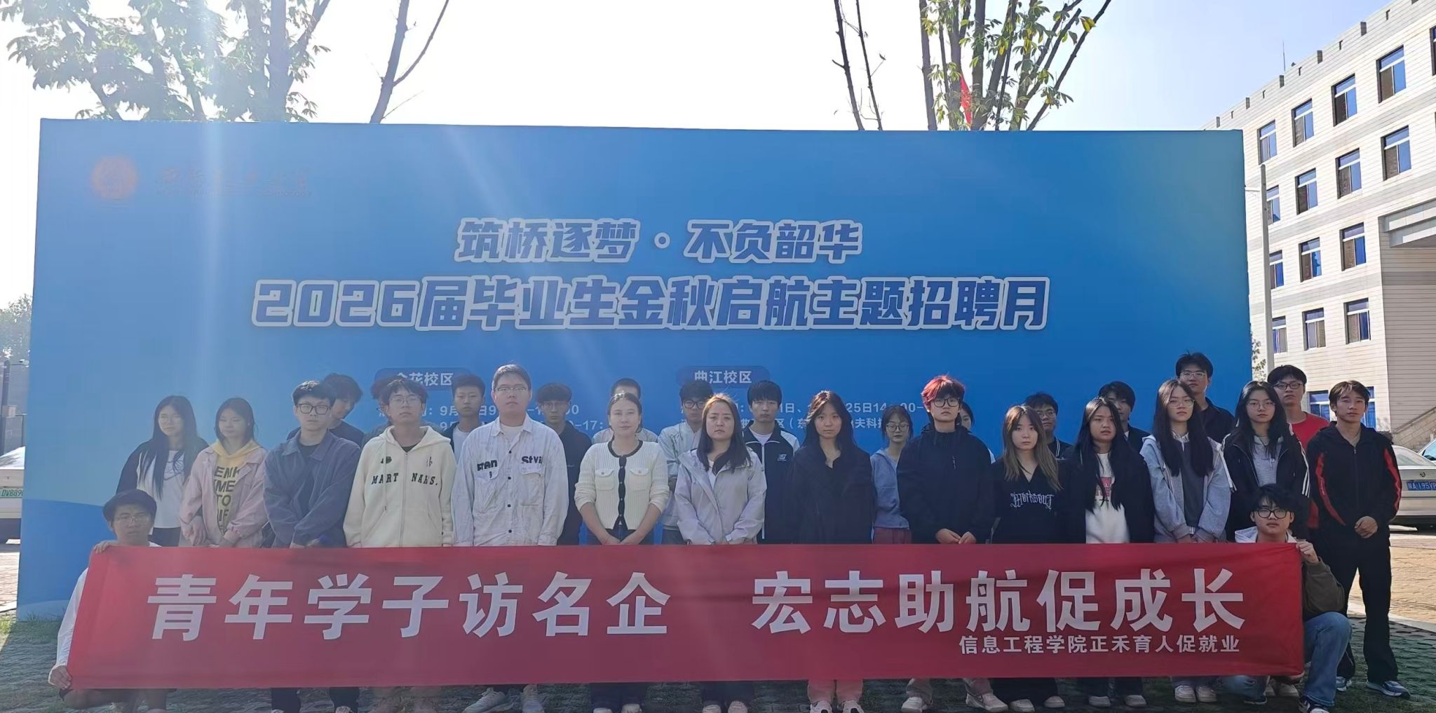 为扎实推进2026届毕业生就业工作,精准助力重点群体毕业生求职,9月24日,信息工程学院组织2025年“宏志助航计划”学生赴西安理工大学,参加“筑桥逐梦·不负韶华”金秋主题招聘会。