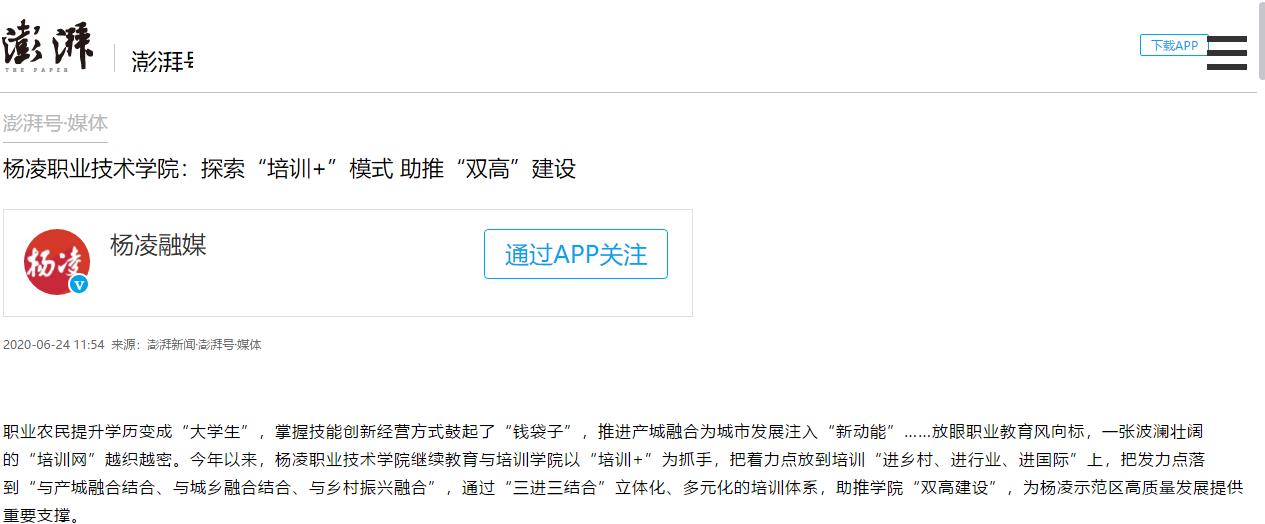 【澎湃新闻】杨凌职业技术学院:探索“培训+”模式 助推“双高”建设