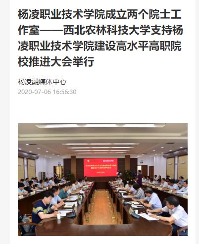 7月6日下午,西北农林科技大学支持杨凌职业技术学院建设高水平高职院校推进大会在西北农林科技大学南校区举行。西北农林科技大学党委书记李兴旺,校长吴普特,中国工程院院士康振生、张涌,副校长马建华;杨凌职业技术学院党委书记陈宁,院长王周锁,党委副书记任得元,党委副书记、纪委书记刘粉莲,副院长张迪、祝战斌出席大会。大会由西北农林科技大学党委副书记吕卫东主持。
