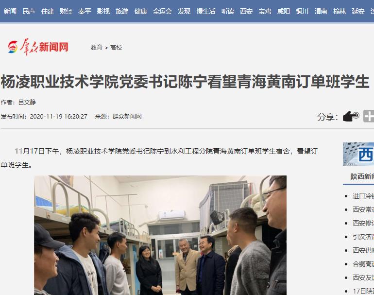 11月17日下午,杨凌职业技术学院党委书记陈宁到水利工程分院青海黄南订单班学生宿舍,看望订单班学生。