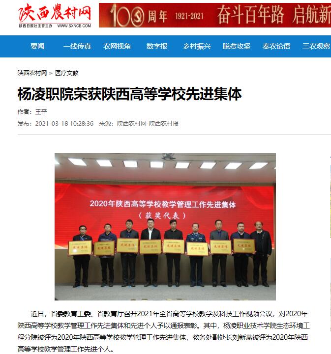 【陕西农村网】杨凌职院荣获陕西高等学校先进集体