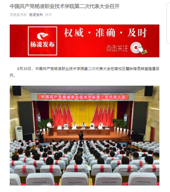 6月30日,中国共产党杨凌职业技术学院第二次代表大会在南校区醒钟楼思辨堂隆重召开。