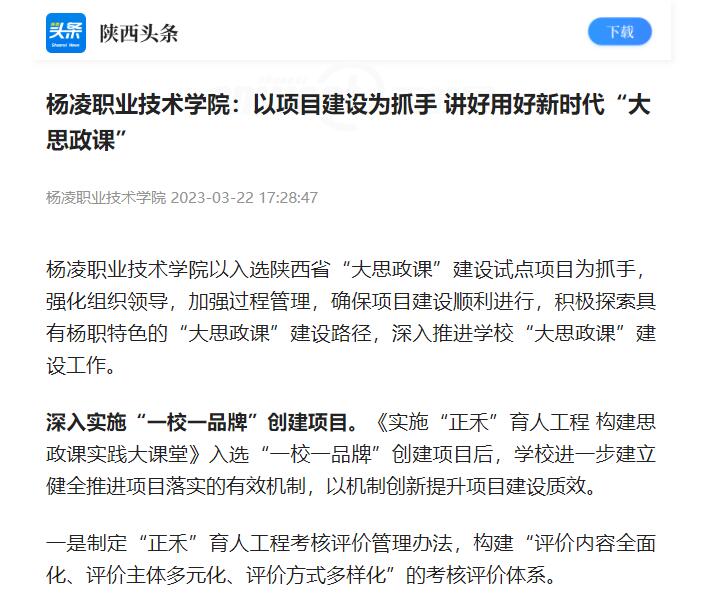 杨凌职业技术学院以入选陕西省“大思政课”建设试点项目为抓手,强化组织领导,加强过程管理,确保项目建设顺利进行,积极探索具有杨职特色的“大思政课”建设路径,深入推进学校“大思政课”建设工作。