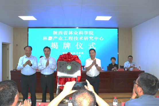 揭牌仪式上,与会领导分别为陕西省林业科学院林麝产业工程技术研究中心、杨凌职业技术学院林麝养殖技术培训基地揭牌。