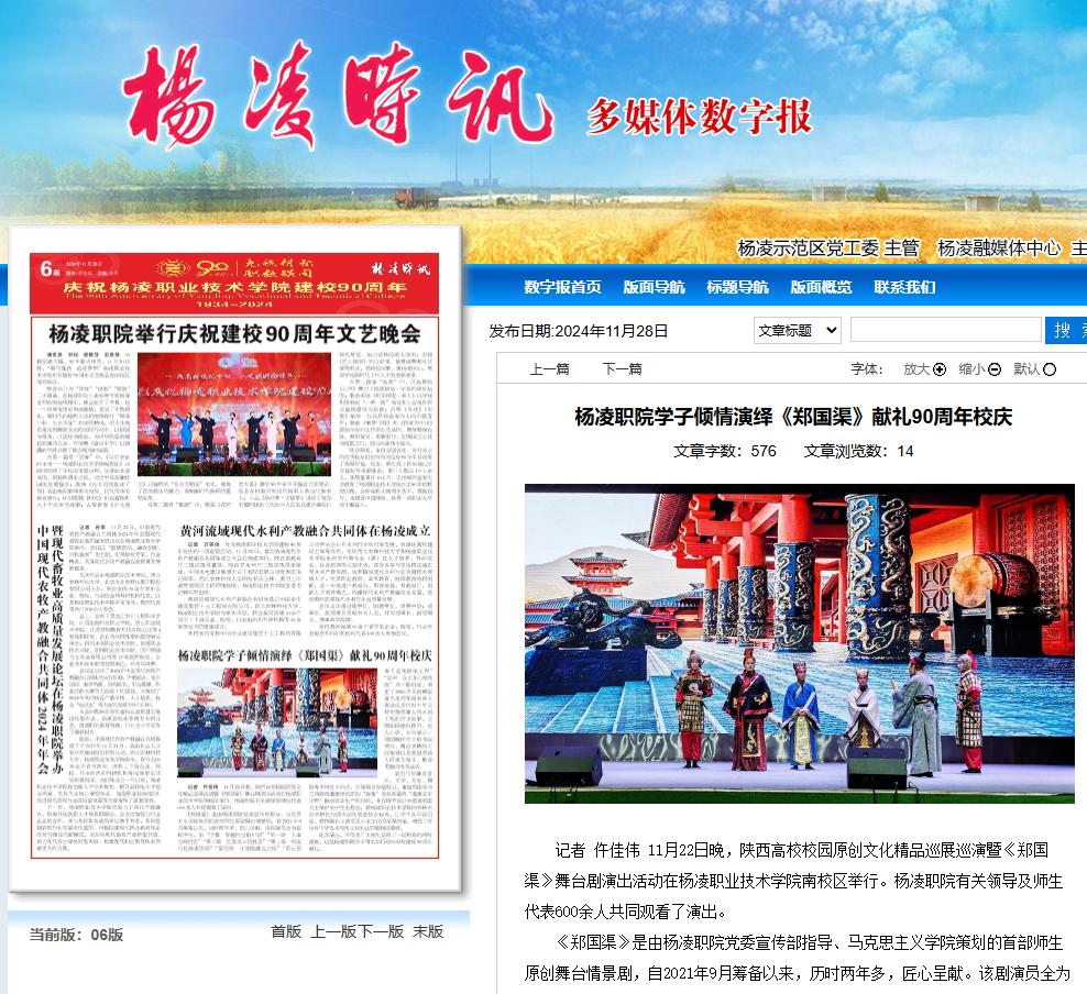 此次演出,不仅为广大师生呈现了一场精彩的视听盛宴,也是杨凌职院学子用实际行动向母校建校90周年献礼。