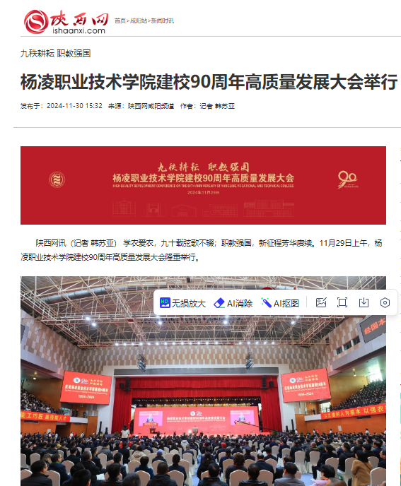 【陕西网】杨凌职业技术学院建校90周年高质量发展大会举行