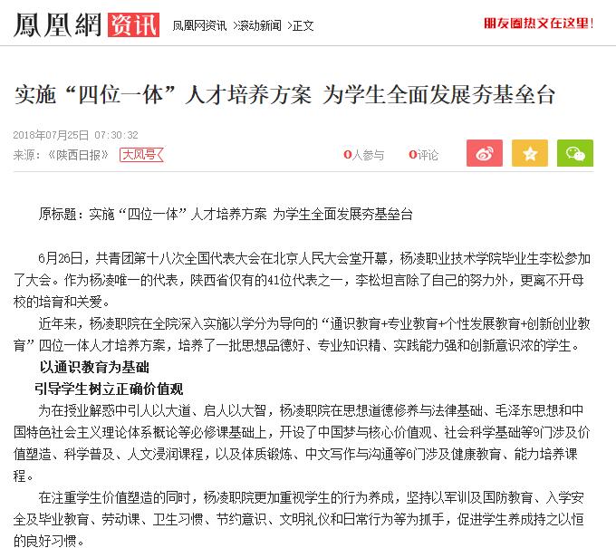 近年来,杨凌职院在全院深入实施以学分为导向的“通识教育+专业教育+个性发展教育+创新创业教育”四位一体人才培养方案,培养了一批思想品德好、专业知识精、实践能力强和创新意识浓的学生。