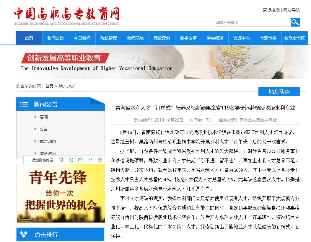 8月16日,黄南藏族自治州政府与杨凌职业技术学院在玉树市签订水利人才培养协议,这是继玉树、果洛两州与杨凌职业技术学院开展水利人才“订单班”后的又一次尝试。