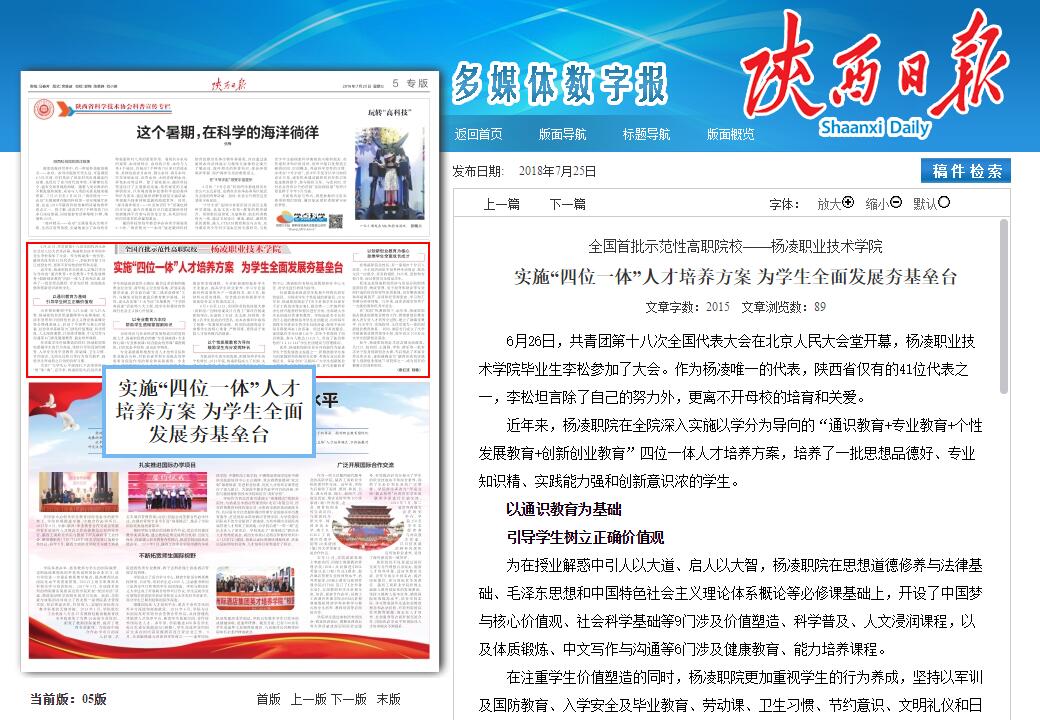 【陕西日报】杨凌职院:实施“四位一体”人才培养方案 为学生全面发展夯基垒台