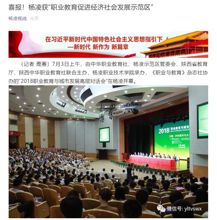 (记者 鹿赛)7月3日上午,由中华职业教育社、杨凌示范区管委会、陕西省教育厅、陕西中华职业教育社联合主办,杨凌职业技术学院承办,《职业与教育》杂志社协办的“2018职业教育与城市发展高层对话会”在杨凌开幕。