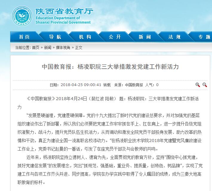【陕西省教育厅】媒体视角:杨凌职院三大举措激发党建工作新活力
