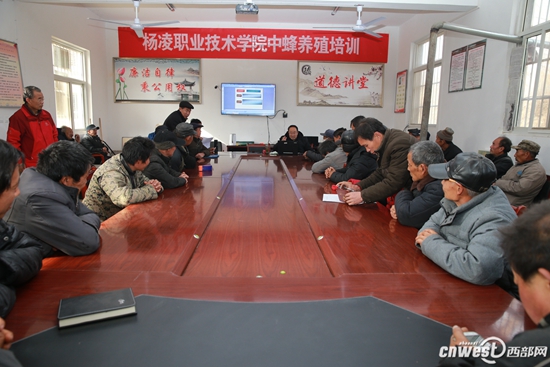 杨凌职业技术学院高级畜牧师黎九洲对当地村民进行了中蜂养殖培训。
