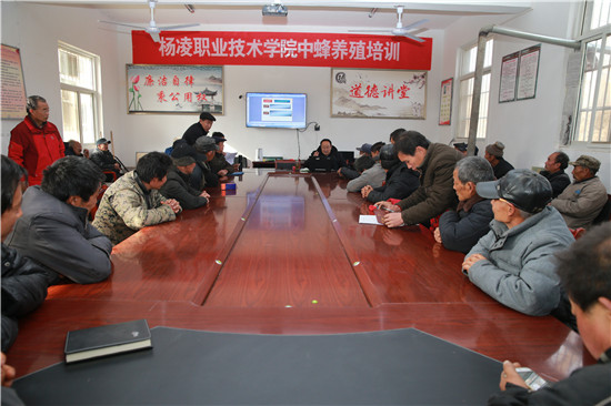 杨凌职业技术学院高级畜牧师黎九洲教授对当地村民进行了中蜂养殖培训。(崔晓)