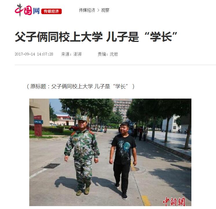 这个开学季,杨凌职业技术学院(简称杨凌职院)校园里有一对特殊的父子,父亲是今年考入该校的新生,儿子已经大二,算是父亲的“学长”了。