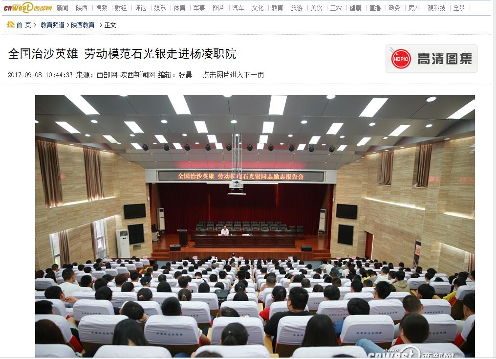 【西部网】全国治沙英雄 劳动模范石光银走进杨凌职院
