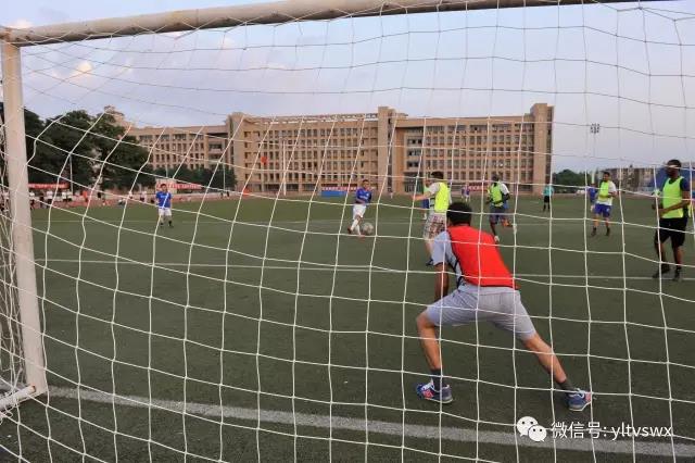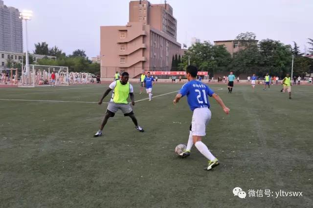 晚上七点,随着裁判员的哨声响起,国际农业培训班代表队与杨凌足协联队足球友谊赛正式开赛。传接、过人、跑位,场上的22名球员在你追我赶,场下的啦啦队员们也用自己的欢呼声为每一位球员加油鼓劲。