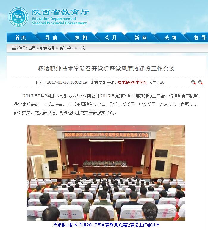 杨凌职业技术学院2017年党建暨党风廉政建设工作会现场