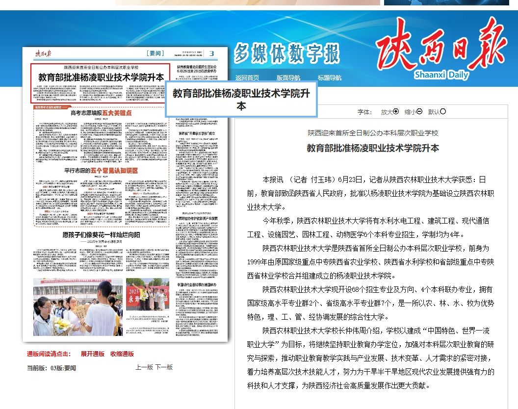 365官网是陕西省首所全日制公办本科层次职业学校,前身为1999年由原国家级重点中专陕西省农业学校、陕西省水利学校和省部级重点中专陕西省林业学校合并组建成立的杨凌职业技术学院。