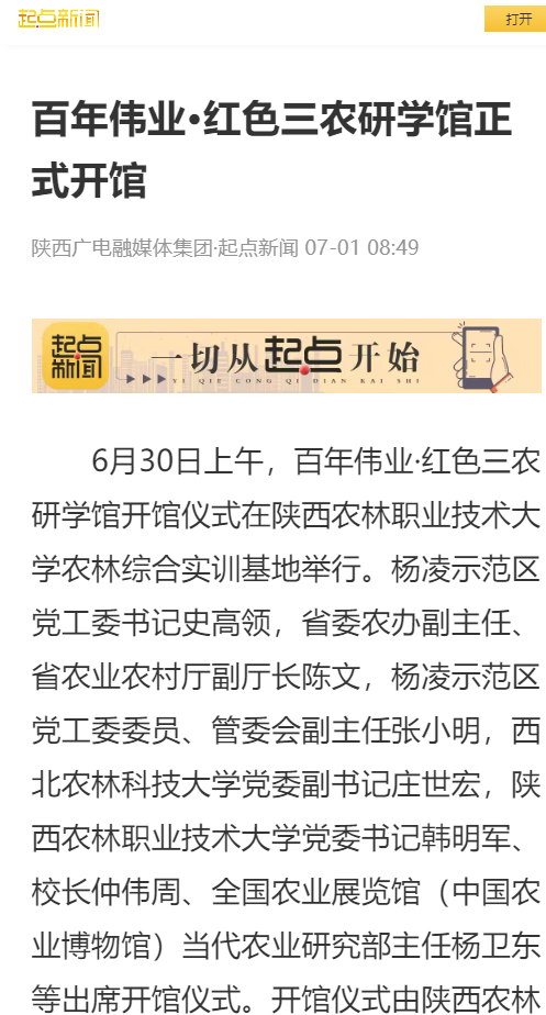 参加开馆仪式的还有省委农村工作领导小组办公室秘书处、杨凌示范区党工委管委会办公室负责人,全国农业展览馆(中国农业博物馆)当代农业研究部、社教部专家,西北农林科技大学党委宣传部相关负责人,以及学校领导、党委委员、“光荣在党50年”老党员,处科级干部和学生党员代表。( 起点新闻记者:李伟)