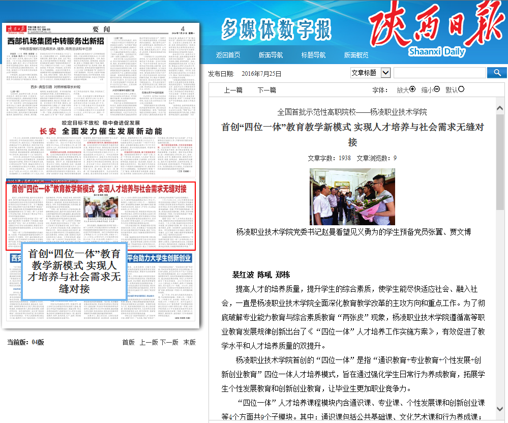 提高人才的培养质量,提升学生的综合素质,使学生能尽快适应社会、融入社会,一直是杨凌职业技术学院全面深化教育教学改革的主攻方向和重点工作。为了彻底破解专业能力教育与综合素质教育“两张皮”现象,杨凌职业技术学院遵循高等职业教育发展规律创新出台了《“四位一体”人才培养工作实施方案》,有效促进了教学水平和人才培养质量的双提升。