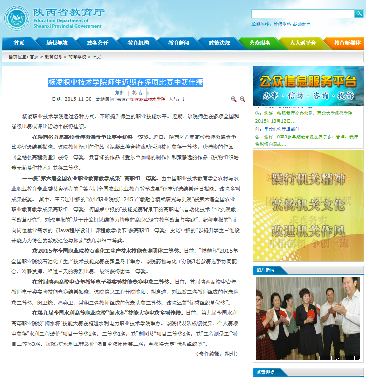 杨凌职业技术学院通过各种方式,不断提升师生的职业技能水平。近期,该院师生在多项全国和省级比赛或评比活动中获得佳绩。