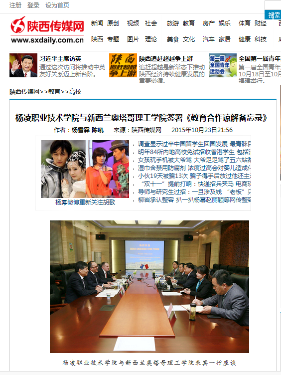 10月23日,新西兰奥塔哥理工学院(Otago Polytechnic)董事会主席SAM先生、行政执行官NICK教授和高级执行官徐定毅先生一行三人到杨凌职业技术学院进行友好访问。学院院长王周锁会见了新西兰奥塔哥理工学院代表团一行,示范区国际局局长明涛,学院副院长张永良参加会见。