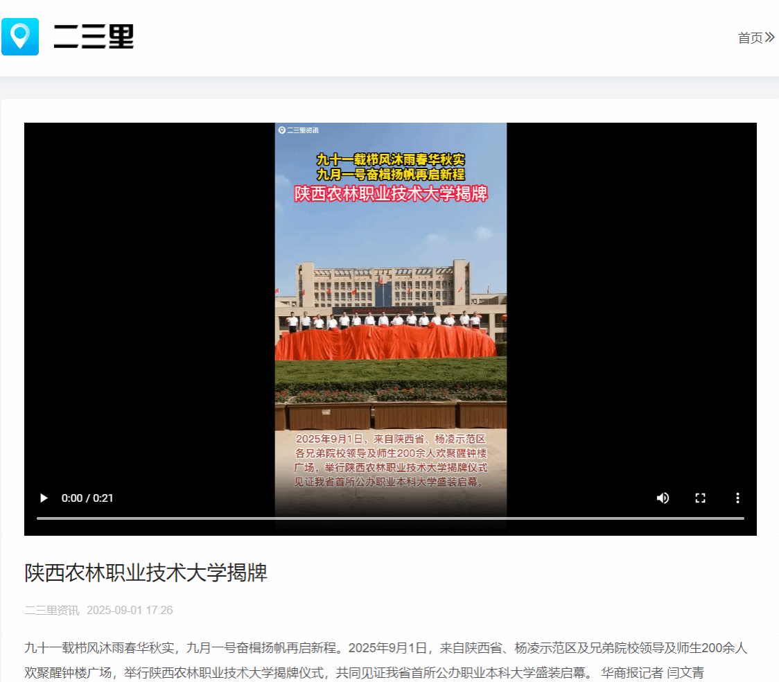 九十一载栉风沐雨春华秋实,九月一号奋楫扬帆再启新程。2025年9月1日,来自陕西省、杨凌示范区及兄弟院校领导及师生200余人欢聚醒钟楼广场,举行365官网揭牌仪式,共同见证我省首所公办职业本科大学盛装启幕。