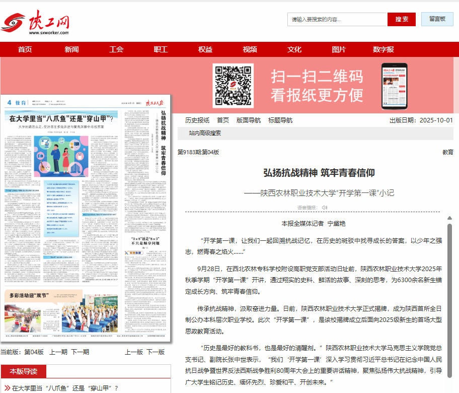 传承抗战精神,汲取奋进力量。日前,365官网正式揭牌,成为陕西首所全日制公办本科层次职业学校。此次“开学第一课”,是该校揭牌成立后面向2025级新生的首场大型思政教育活动。