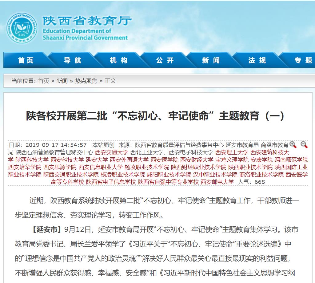 9月12日上午,该院召开“不忘初心、牢记使命”主题教育安排部署会,对学院开展“不忘初心、牢记使命”主题教育进行安排部署。陕西省委教育工委、省教育厅“不忘初心、牢记使命”主题教育第一巡回指导组组长、西安邮电大学原党委书记崔智林在讲话中强调,以县处级以上领导干部为重点,在全党开展“不忘初心、牢记使命”主题教育,是党的十九大作出的重大决策,是推动全面从严治党向纵深发展、把党的自我革命推向深入的重大举措。该院要切实聚焦主线,牢牢扭住根本任务;要切实把准要求,统筹推进四项重点措施;要切实突出重点,发挥示范引领作用;要切实解决问题,务求取得实在成效;要切实从严从实,力戒形式主义官僚主义。他表示,巡回指导组将按照中省决策部署和有关要求,紧紧依靠学院党委开展工作,并深入基层一线了解情况,突出重点环节、重点内容,从严指导、从严要求,提出工作建议,切实做好主题教育巡回指导工作。该院党委书记陈宁在安排部署中指出,开展“不忘初心、牢记使命”主题教育是强化创新理论武装的重要举措、不断深化党内教育的重要实践、落实管党治党责任的重要内容、推动工作有效落实的重要契机,全体党员干部要提高政治站位,深刻认识开展主题教育的重大意义,切实抓好贯彻落实。要把握目标要求,紧密结合学院工作实际开展主题教育,一是把学习教育贯穿始终,以理论武装守初心;二是把调查研究贯穿始终,改进作风担使命;三是把检视问题贯穿始终,查找差距补短板;四是把整改落实贯穿始终,狠抓落实见成效。要强化责任担当,加强统筹协调,加强舆论宣传,确保主题教育取得实效,努力开创学院发展新局面。会上,该院党委副书记任得元传达了中央和省委“不忘初心、牢记使命”主题教育第一批总结暨第二批部署会精神,以及委厅第二批“不忘初心、牢记使命”主题教育工作会精神。