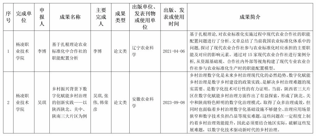 杨凌职业技术学院申报2024年度陕西高等学校人文社会科学研究优秀成果认定的公示