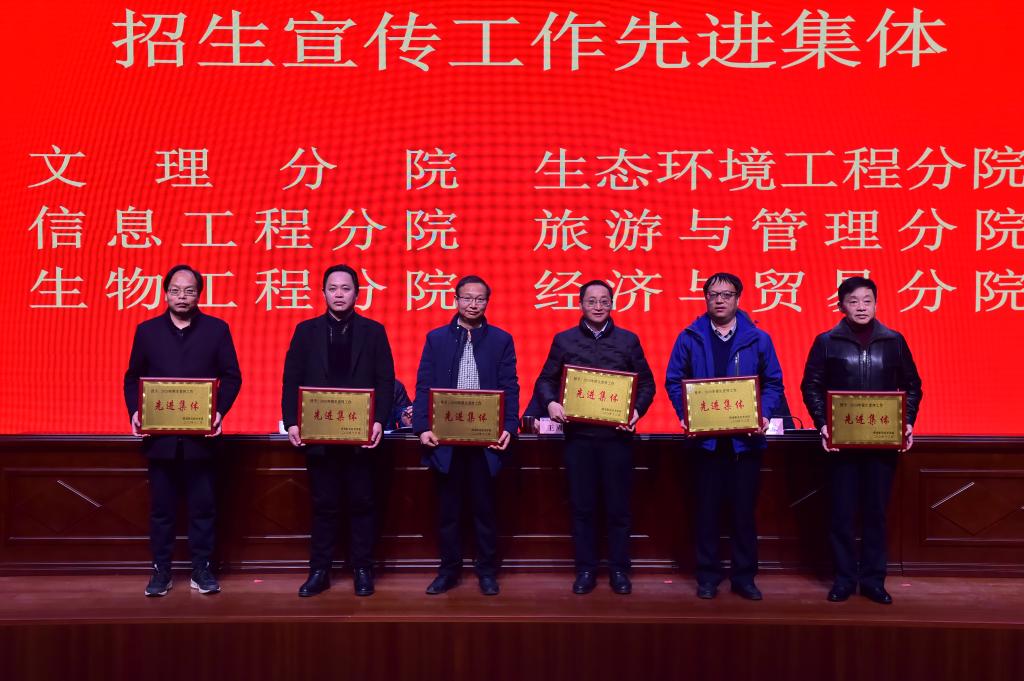 会上,任得元对2020年招生宣传、就业创业工作进行了总结汇报,介绍了招生就业工作的具体做法和完成的任务,分析了我校招生就业工作面临的挑战和存在的问题,并对2021年招生就业工作进行安排部署。招生就业处处长袁军儒宣读了《关于表彰2020年度招生宣传和就业创业工作先进集体和先进个人的通报》。与会领导为获奖的先进集体进行了颁奖。文理分院和水利工程分院分别代表招生宣传和就业创业工作先进集体进行了经验交流发言。