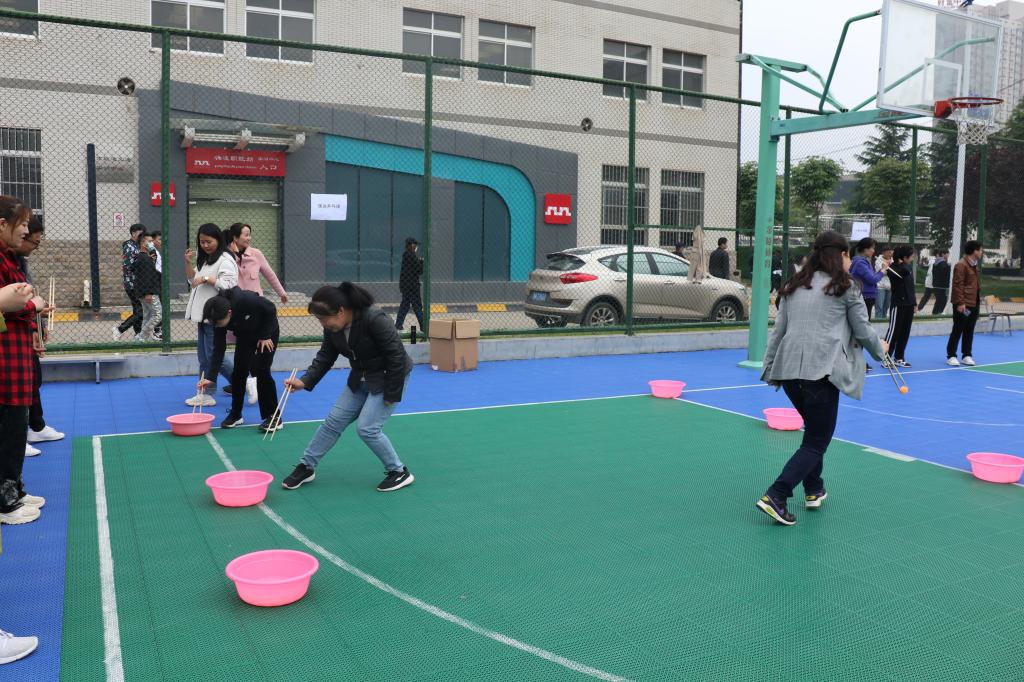 今年教职工趣味运动会趣味项目设有集体项目1项,个人趣味项目5项。集体项目为同心协力夹球跑,个人项目分别为贴A4纸速跑、1分钟跳绳、筷运乒乓球、1分钟踢毽子、心心相印(背夹球)。本次教职工趣味运动会注重了趣味性、娱乐性、参与性,活动场地人头攒动,教职工参与热情高涨,大家欢声笑语,开开心心地完成各个趣味项目。