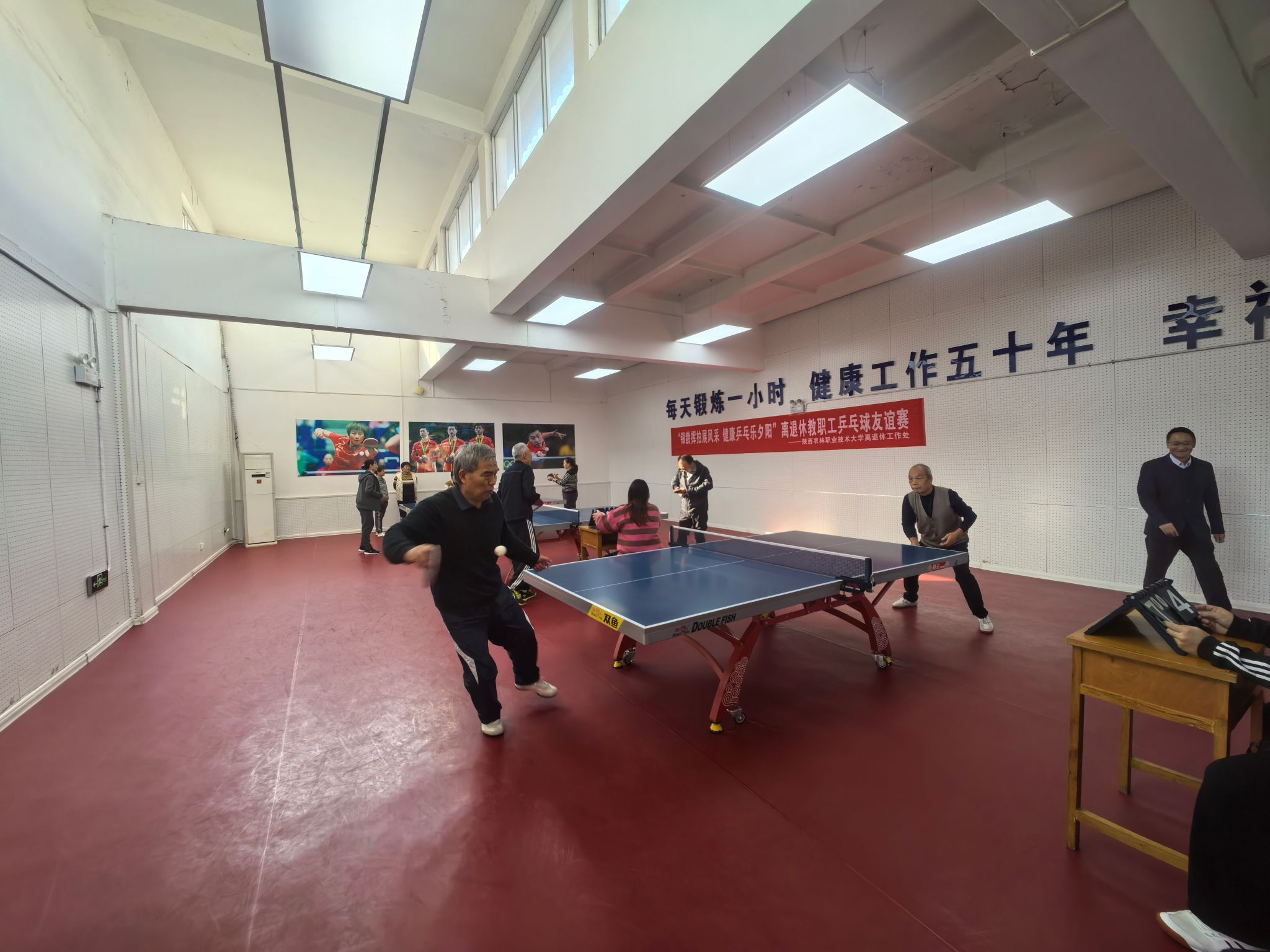 为丰富离退休教职工精神文化生活,搭建交流互动平台,11月14日,离退休工作处组织20余名离退休教职工在学校南校区活动中心开展“银龄挥拍展风采 健康乒乓乐夕阳”乒乓球友谊赛。