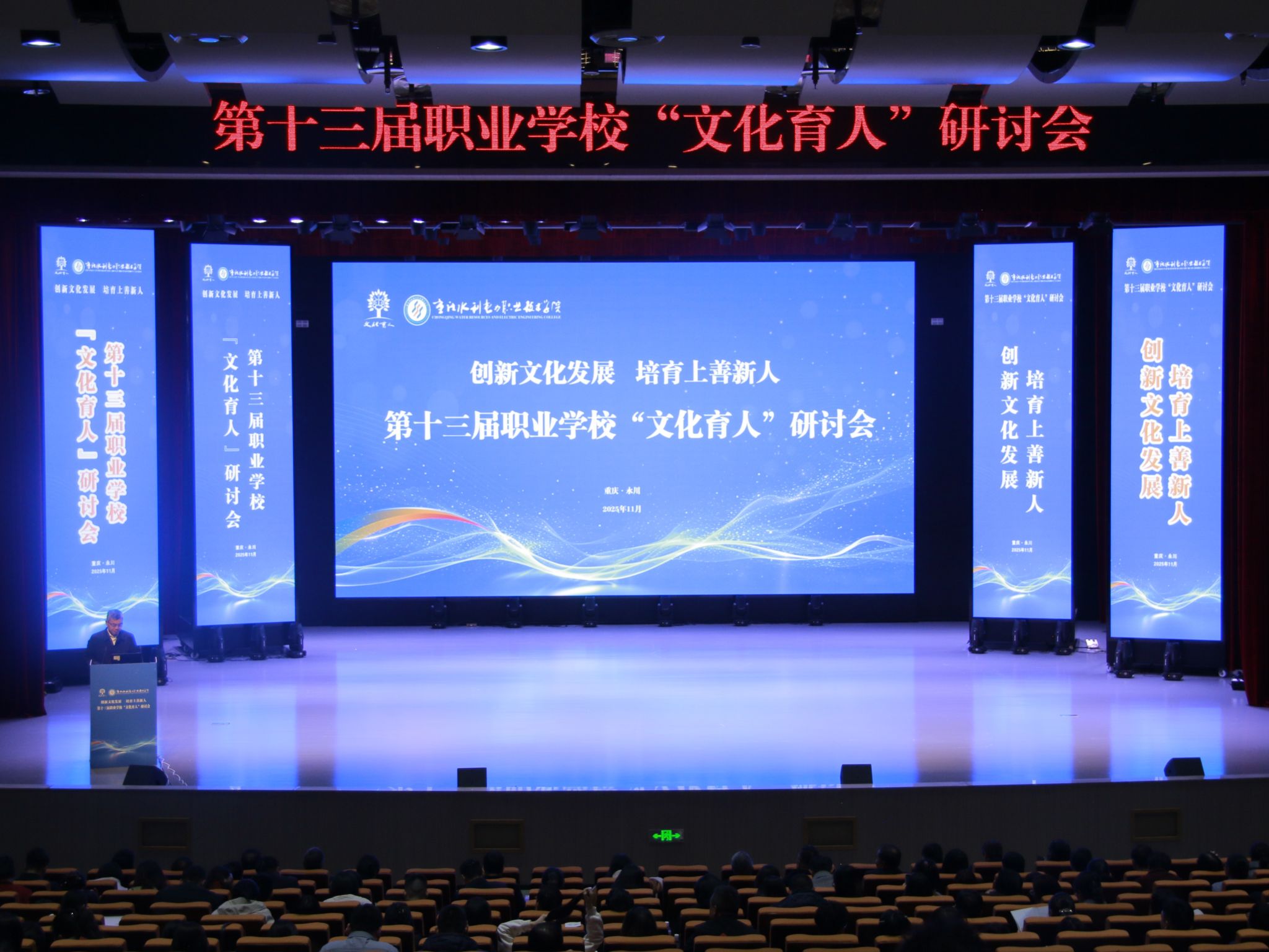 11月20日,由教育部职业院校文化素质教育指导委员会主办、重庆水利电力职业技术学院承办的第十三届职业学校“文化育人”研讨会在重庆永川成功召开。党委书记韩明军出席并作大会交流。党委宣传部、水利工程学院负责人参加会议。