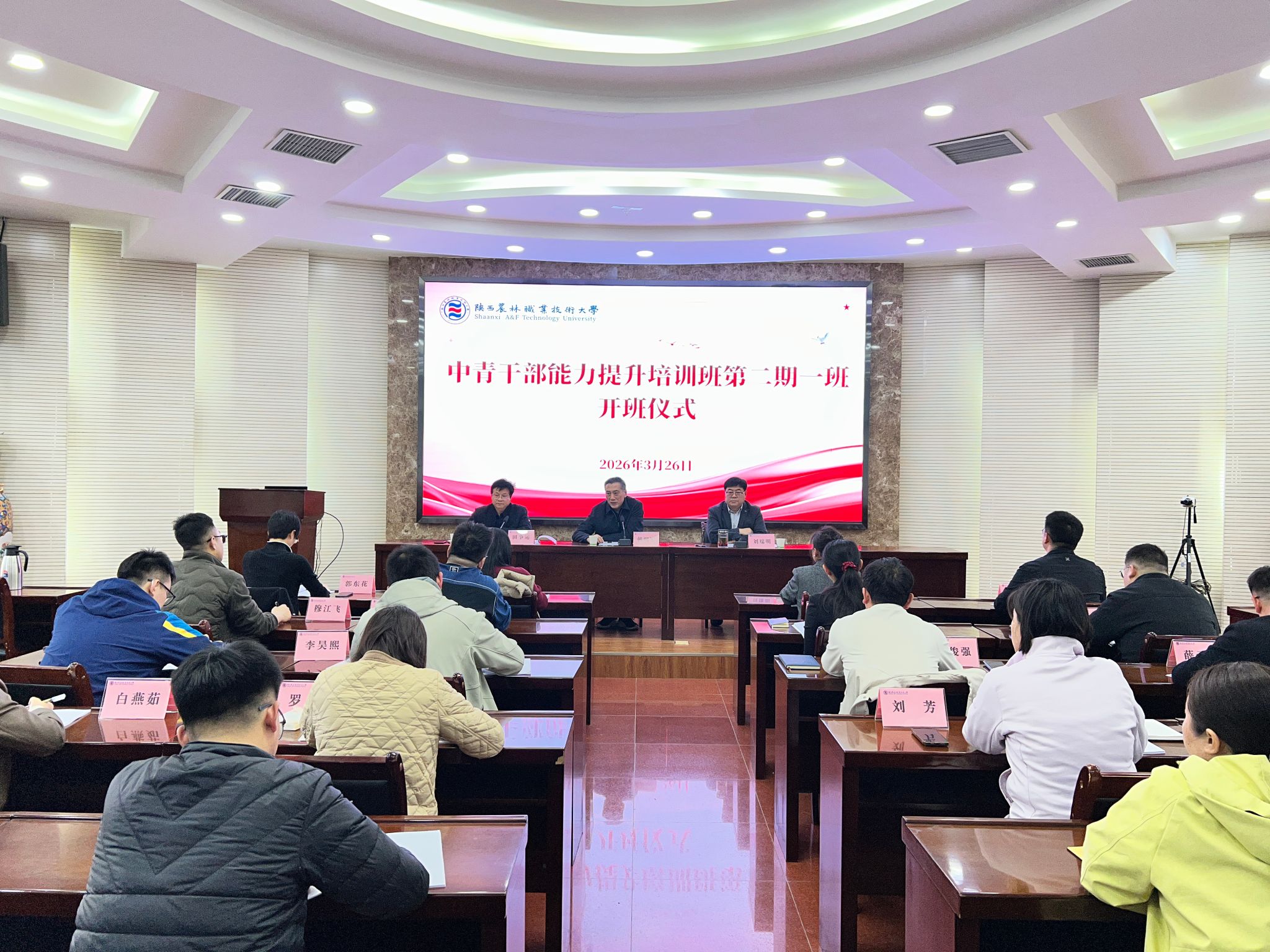 3月26日,学校举行中青干部能力提升班第二期一班开班仪式。党委书记韩明军出席开班仪式并讲话,党委副书记刘瑞明作专题授课。20余名参训学员参加培训。党委委员、党委组织部部长田争运主持会议。