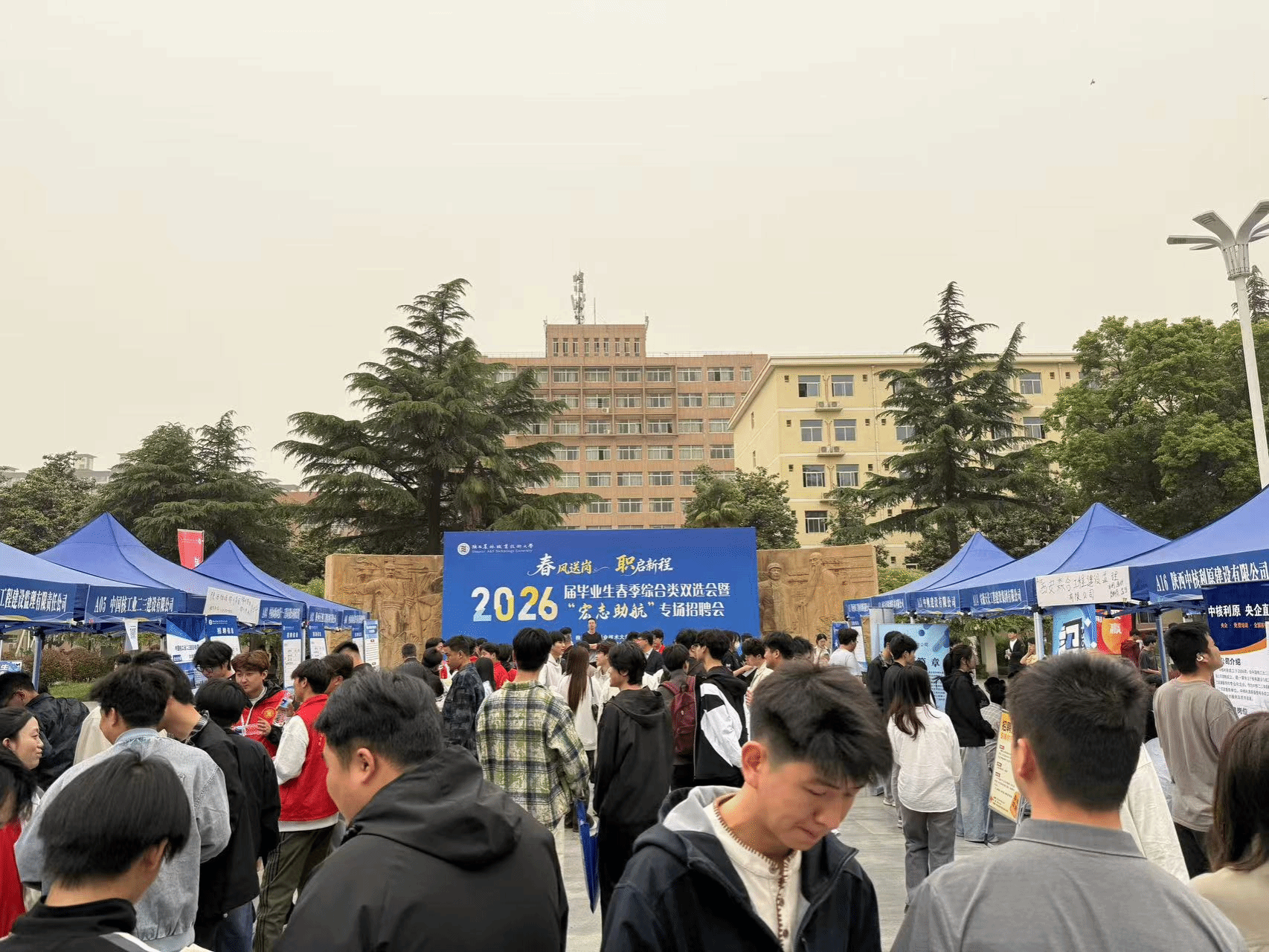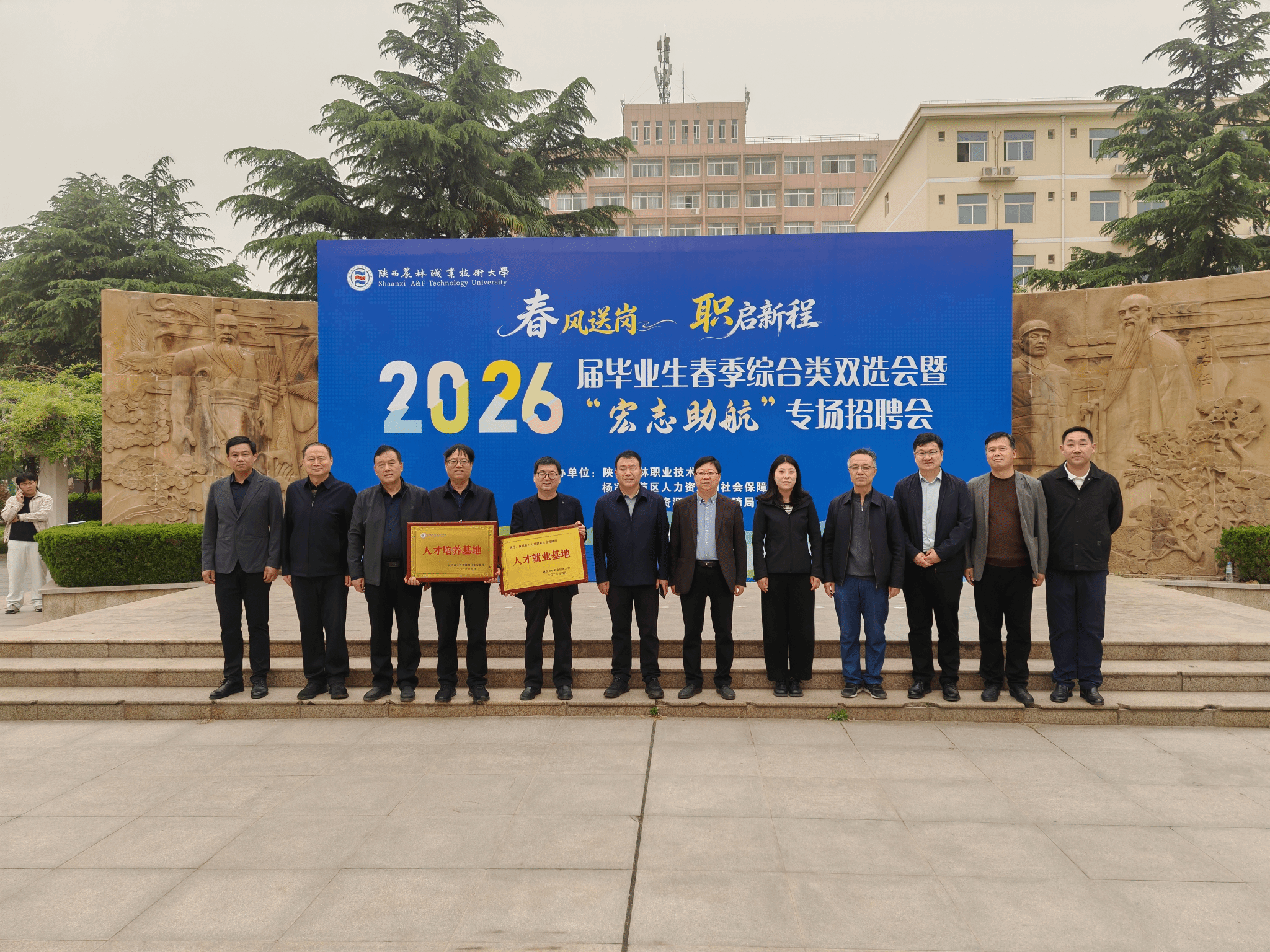 4月19日上午,由我校与杨凌示范区人力资源和社会保障局、杨陵区人力资源和社会保障局、扶风县人力资源和社会保障局联合举办的2026届毕业生春季综合类双选会暨“宏志助航”专场招聘会在南校区顺利举行。期间,同步举办了扶风县招才引智进校园座谈会和多场校企合作座谈会。校党委副书记王勇胜出席活动并现场指导就业服务工作。