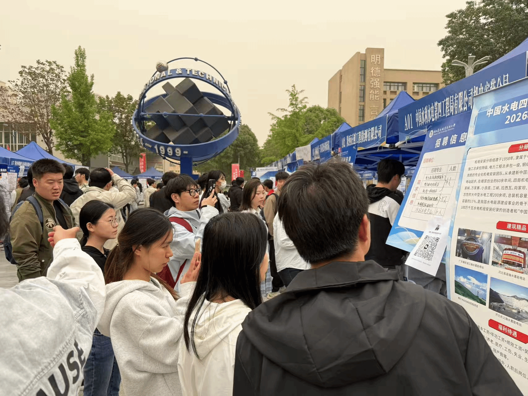 本次双选会吸引162家优质企业到场参会,涵盖水利工程、机械制造、现代农业、食品加工、生物医药、生态环保、畜牧兽医、现代服务等与学校专业高度匹配的领域,共提供3910个就业岗位。双选会现场人头攒动、氛围热烈,毕业生们手持简历,穿梭各展位间,主动咨询岗位详情、投递简历、现场面试,展现出扎实的专业素养与积极的求职风貌。