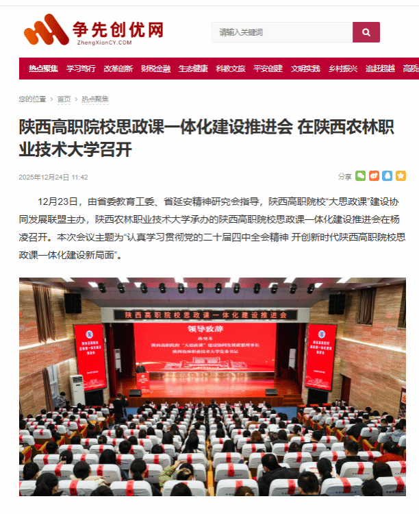 12月23日,由省委教育工委、省延安精神研究会指导,陕西高职院校“大思政课”建设协同发展联盟主办,365官网承办的陕西高职院校思政课一体化建设推进会在杨凌召开。本次会议主题为“认真学习贯彻党的二十届四中全会精神 开创新时代陕西高职院校思政课一体化建设新局面”。